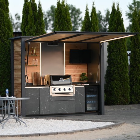 Outdoor kitchens are the answer for those who value the unsurpassed convenience of experiencing life on their own terms. It’s a blend of a traditional kitchen, a grill, a home cinema, and a social gathering spot in the fresh air. Highest quality, multiple premium add-ons, modern design – Try new dimension of BBQ style.